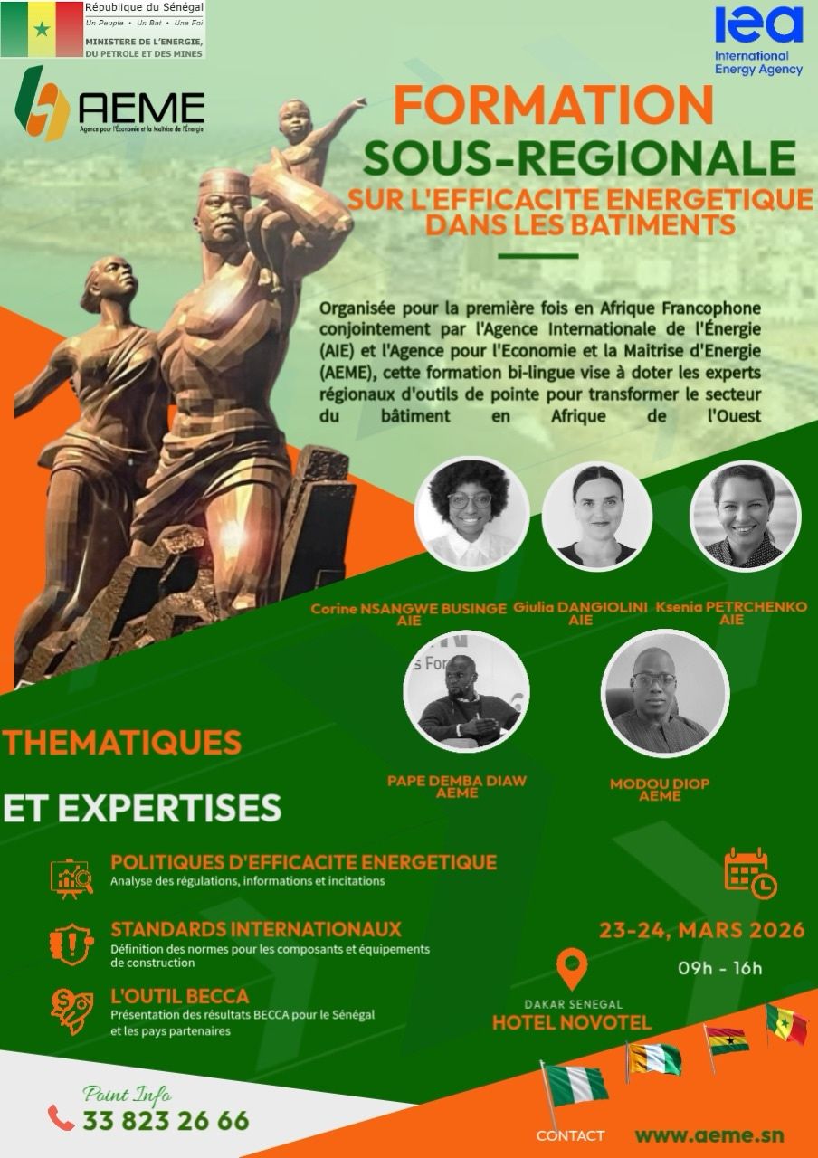 LโAEME est heureuse d'accueillir les dรฉlรฉgations de la Cรดte dโIvoire, du Ghana et du Nigeria ร Dakar pour une formation intensive de deux jours avec l'Agence Internationale de l'รnergie (AIE)